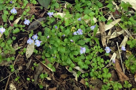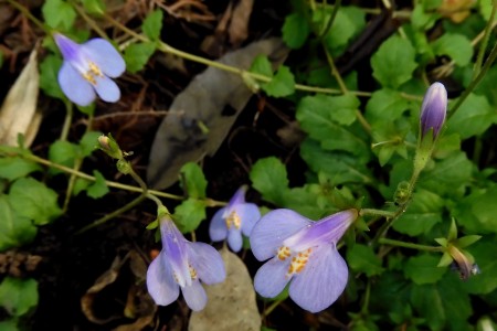遊水池の土手で湧水のあるところに群生。他の草が伸びる前に花を咲かせていた。